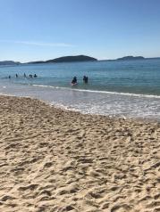 大东海的水流还是比较急的。不太适合下海,但沙滩还是挺软的,关键是免费的沙滩,这就很好了,这是到三亚看到的第一个海滩。晚上的大东海海边还是挺冷的,这里的人还是有很多的,海边也十分热闹,唱歌的酒吧也十分的多。