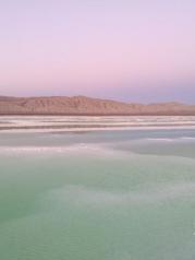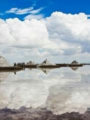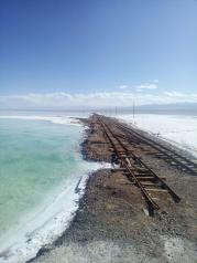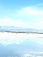 茶卡盐湖如梦如幻。湖水清澈、天空湛蓝、白云淡淡,偶尔小鸟飞过,简直是仙境一般。白茫茫的盐湖中,历史遗留下来的铁轨,延伸到远方,仿佛通往世界的尽头。每年6月前和10月后,是茶卡盐湖的枯水期。这段时间的茶卡盐湖湖没有晴朗透澈的感觉