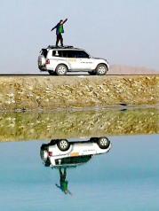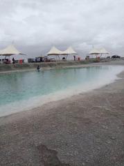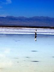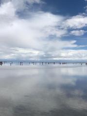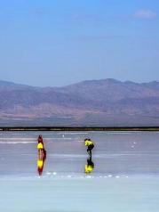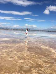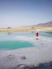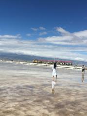 茶卡盐湖——照片无法完全表达出现场感受到的美,可能因为是去年国庆节去的,遭遇了人从众模式,但是天气很好,晴朗的天空中有几朵白云,倒影在湖面上,如果不是因为下水照相的人太多,应该会更漂亮,有一点遗憾的是,小火车终点站到站过后已经不能再往深处走了,有人在看守,听说晚一点看守的人下班可以,不过因为时间关系,没有呆到那么晚
