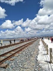 因为2019第十八届环青海湖国际公路自行车赛环湖赛赛道经过茶卡盐湖,去的时候好像在预演,停车场出口不放行,所有车堵了几百辆近一小时,终于放了,收费口还是悠闲地在收费,我目测一个收费员就走进走出收费亭4次,那一排车没动过……刚刚车开始走,火车经过,名副其实的慢车,开到中间停了5分钟,如果想体验慢生活,推荐来,停车场就可以玩俩小时。景点人太多,不知道网红照片都怎么拍出来的,返程的电瓶车还停了,70岁老人在3000米海拔走得快虚脱……不说了看图吧,来的人都是勇士。