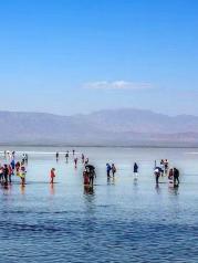 茶卡盐湖景点人很多估计有一二万人,不过真挺美。和玻利维亚的天空之镜绝对有一拼。女的来记得带上红色纱巾或红色飘逸的长裙戴上墨镜拍出的照片绝对漂亮的[呲牙]偶们在湖里跳的腿都要跳断了[偷笑]