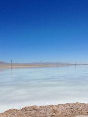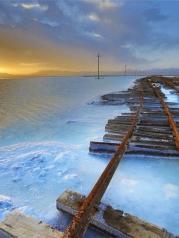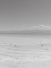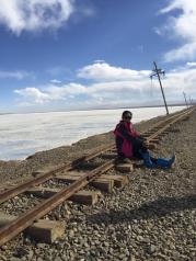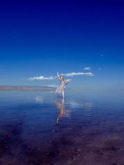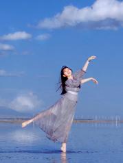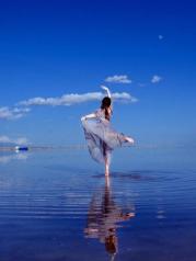 自青海湖向西不远即是茶卡盐湖,景区不大,却如传说般存在。临湖,远山蒙蒙,白盐皑皑;抬首,天色苍苍,山雨欲来;彷徨,西风萧萧,低吟浅唱;顿感,汉唐石器,丝路繁华。我看见,一只鹰划过无际的天空,多么空旷的原野,太阳光透过朵朵云层,这般美丽的画卷。这东倒西歪的电杆,悠长无际的铁轨,又为茶卡穿上童装的外衣。其实,在我梦里,一直以为这里有一位姑娘,着一袭素裙与披肩,在这天空之镜面,飞舞翩跹……