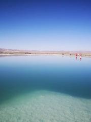 我们很幸运,去茶卡盐的时候天气很好,能拍出倒影来,就是水稍微有点深。门票70元,小火车来回100,感觉性价比不高,小火车尽头处才可以下水拍照,走过去差不多20到30分钟,赶时间的话建议小火车,不赶时间就走过去,尽头那里有条厕所船。从外往里走,左手边有些地方湖水很浅,露出白盐,拍照很好看。很多人都穿红裙子或者批红披肩来拍照,其实黄色的衣服拍照也很意外的好看。很晒,建议做好防晒,墨镜必备。