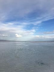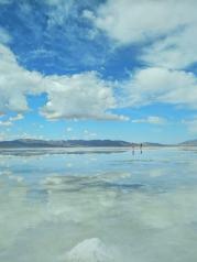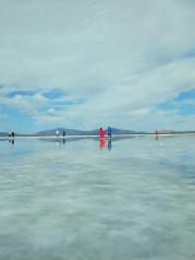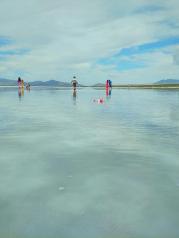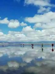 纯净的世界,蓝天白云,像镜子一样的茶卡盐湖,天上地下互相映衬,很美,非常适合拍照,所以这里人山人海,也就这有点煞风景,哈哈,还有就是美丽是要付出代价的,湖里的盐,颗粒挺大挺硬,走在上面脚很硌,但大家为了拍出美照,相信人人都是勇士。这里还要说一下美中不足的,很多游客使用完鞋套后就随地丢,很不文明,也破坏美景,所以倡议大家都能做个文明游客,保护美丽的风景!