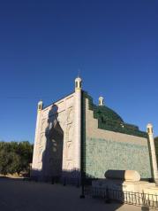 哈密火车站坐车去了回王墓,40元的门票,第一次见到伊斯兰这么漂亮的建筑,还算比较值的,墓园不大,还有一个能容纳5000余人的清真寺,当时是东疆地区最大的清真寺