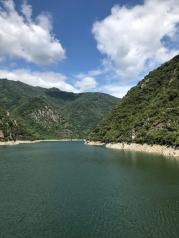 石门栈道的水库,一路风景很不错!就是下雨有雾