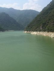 看看这个石门古栈道成了我对汉中的一种追求。可惜,那个时候没有照相机和手机,也没有其他更为先进的摄录手段,只好用自己的头脑记忆下来,成了永恒的画面。 曾几何时,转眼就是将近50年,前几天,我终于又来到汉中,在朋友王放的陪同下,来到了可以说是“梦寐以求”的秦岭栈道,圆了50年的梦。 尽管我有思想准备,看不见过去的古栈道,但是,我还是没有先见之明,预料到现在是什么样子。 宽阔的水面说明上边有水库,虽然积了水,但是,峡谷的沟底已经是看不见了,可是古代人在“明修栈道,暗度陈仓”的时刻,不一定能够有那么高的水准,古栈道还能看得见吗?