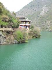 石门栈道和安康的瀛湖类似,都是水电站的基础上开发的,但各有特色,汉中栈道是古有的2300多年前人开发的,后期加固而成。风景独特,园内开发资金到位,整洁,布局合理,其内有泥巴人捏造的汉中人情风画,有介绍汉中风俗的墙画,铜像,索道,游艇,整体规划布局合理,充实,这一点估计汉中旅游局功不可没!河道一路风景秀丽,有点九寨沟的味道,建议大家去敲一下钟,一元一下,来个十全十美!最后给想去的看官说下,一定要走到追鹰亭,大概3.6公里,去看看真正几千年前的古人建造的栈道有多艰险,那里没有加固,自己走个一百来米,估计双腿已经发软无法前行了。