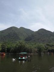 第二次去秦岭野生动物园,最大的感受是那只可怜的大熊猫住的环境改善了,虽然它一个躺在里面还是很孤独,孩子玩的很开心,喂了天鹅看了猴子老虎,断断续续下雨。感觉比第一次来的时候好多了,也许是这次有下家伙的缘故,等他再大点了再带他看动物