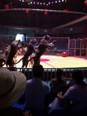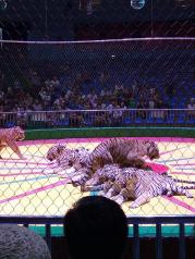 第二道门取票进秦岭园,直接坐免费的大巴,师傅汽车开的有点快,没怎么看见动物,可能天气热,都没出来吧,到了步行区我们直接去马戏团看表演,后边的老虎表演很精彩。值得一看。在出来看其他动物时,有点迷路,路标实在有点少,问了几个工作人员才走出来。