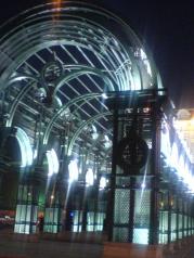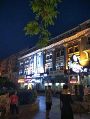 哈尔滨中央大街是一条繁华的商业街,街上坐落着马迭尔宾馆和马迭尔西餐厅,还有众多老的西式建筑。夜晚来临,华灯璀璨,游人如织。在街上可以领略哈尔滨红肠等等。我运气好,听到了外国艺术家在二楼露台的小提琴演奏。