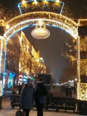 晚上来逛哈尔滨中央大街很热闹,人很多,注意钱包,手机,里面建议不要买东西,买点格林里道斯的火腿肠,什么套娃建议网上购买,都一样的,没必要多花钱,而且拿着东西还多