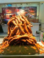哈尔滨中央大街是哈尔滨市里,最热闹之一的步行街,里头有很多特色产品及小吃,如:红肠、俄罗斯镜子、俄罗斯娃娃、冰淇淋、工艺品…等