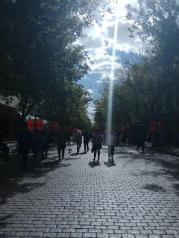 哈尔滨中央大街全长2000米,道两边俄式建筑随处可见,绿荫成行,踩在斑驳不平的路面,感觉踏上了历史的旅途。中央大街与西十四路左转直走就是索菲亚大教堂。强推夜游中央大街,吃着马迭尔冰激凌,漫步在中央大街,浪漫呐!