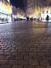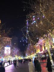 第一次有机会逛哈尔滨中央大街 很长的一条步行街 路面都是用同样尺寸的岩石铺设的 看起来很有历史感 晚上夜景分外好看 树上挂满彩灯 正值冬季 路旁立漫各式冰雕和雪雕