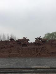 灞陵桥景点不小,游客不多。在关帝庙里面的那个小三孔石桥才是灞陵桥的遗址,外面那个大的不是。原桥高于水面3米余,为三孔青石桥。桥面宽能并行两车,桥长90米,两岸杨柳成行,风景宜人,桥旁有《汉武帝挑袍处》石碑,为明末将领左良玉所立。