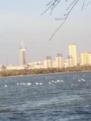 天鹅湖国家城市湿地公园,在三门峡市区的西侧。冬日的阳光下,湛蓝水面和水边金色的芦苇,映衬着湖面上洁白的大天鹅,宛如盛开出千朵游动着的雪莲。漫步在观鸟栈道上,很多天鹅就在离岸不远处,时而成双成对、悠闲游弋,时而倒立翻滚、觅食饱腹,时而列队出行、击水追逐,时而昂首展翅、直刺蓝天……这场面,就像一幕幕生动的电影画面,一幅幅灵动的美术佳作。