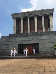 巴亭广场据说是地位和天安门广场一样的存在。广场正中央是岁色调的胡志明墓,也有警卫在门前站岗,但不似天安门那么肃穆,立方体形状的建筑更像是一个大家喜闻乐见的艺术品。