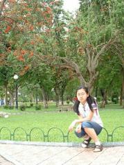 巴亭广场——河内是 个摩托车的城市 虽然没有特别的异国他乡的感觉,但是有在国内异地游的安全感,熟悉的肤色,宾至如归的建筑形式,就像在家的感觉。 清晨我出来散步,南方的晨曦,一抹阳光洒在人们的脸上,忙碌的河内人买早点的、赶早集市的,在门口泼脏水的,用扁担挑着竹制品沿街叫卖的、卖米粉小老板的吆呼声此起彼伏,汇成一组城市生活交响曲。这种交响曲不时的被飞驰而过的摩托车的发动机声音淹没,这些摩托车绝大多数都由女性驾驶,她们身着雪白的越南旗袍,脸上带着雪白的面纱,靓丽又抢眼,乌黑的眼珠直视着前方,仿佛是一个个的天使。这种情景最让人回忆起当年在抗美救国战争中在胡志明小道运输线上的越南女民兵,干练