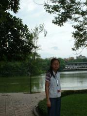 巴亭广场——河内是个摩托车的城市 虽然没有特别的异国他乡的感觉,但是有在国内异地游的安全感,熟悉的肤色,宾至如归的建筑形式,就像在家的感觉。 清晨我出来散步,南方的晨曦,一抹阳光洒在人们的脸上,忙碌的河内人买早点的、赶早集市的,在门口泼脏水的,用扁担挑着竹制品沿街叫卖的、卖米粉小老板的吆呼声此起彼伏,汇成一组城市生活交响曲。这种交响曲不时的被飞驰而过的摩托车的发动机声音淹没,这些摩托车绝大多数都由女性驾驶,她们身着雪白的越南旗袍,脸上带着雪白的面纱,靓丽又抢眼,乌黑的眼珠直视着前方,仿佛是一个个的天使。这种情景最让人回忆起当年在抗美救国战争中在胡志明小道运输线上的越南女民兵,干练而凶狠,报仇是