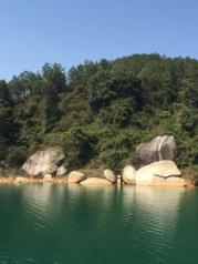 万绿湖我们到达10点50分,刚好赶上了11点的船,(景点现付,快捷),全程4个小时左右,因为时间问题有个景没去玩,但那湖水真的好靓,吹着风,说不出有多么的愉快,是个散心的好地方。个人认为,可适当增加几个凉亭之类的建筑。在岛上停留时间不长,但由于除了游览风景之外,基本上足够。像其他朋友说的一样,我也有像赶鸭子的感觉。