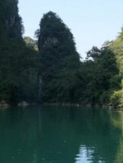 紫云仙境分为大穿洞景区、大河景区两大景点。一词为苗语,意为跳花圣地。 来到格凸,穿行溶洞,留连苗厅,漫步青山,泛舟峡谷,乘兴漂流,闲亭稍憩,浏览湖光山色,陶醉于大自然之中,远离闹市喧嚣。 进入景区先坐电瓶车,然后进入大穿洞游览。体力好的,可沿大穿洞栈道,直达洞顶,再坐电梯下山游玩。我们与老年人同行,就直接坐船了。整个景区山清水秀,空气很好。不足的是,门票已经包含了表演费用,可是因为游客比较少,就直接不表演了。150的门票也不便宜啦!