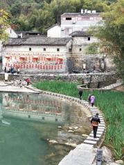 黄姚古镇应该算是保留原貌比较好的古镇,古老的青石板路窄窄的,两边也是高低错落的土砖木结构的古民居。一条小涧贯穿古镇,多座石桥连接两岸:以带龙桥最为有名,石跳桥最为有趣……