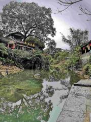 黄姚古镇应该算是保留原貌比较好的古镇,古老的青石板路窄窄的,两也是高低错落的土砖木结构的古民居。一条小涧贯穿古镇,多座石桥连接两岸 : 以带龙桥最为有名,石跳桥最为有趣…… 古镇内古老榕树千姿百态 : 龙爪榕似龙爪在空中飞舞,夫妻榕紧紧依偎。