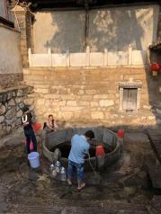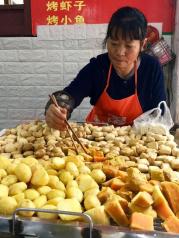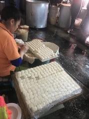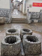 建水古城还有一口百年大板井,在井的旁边有一个“板井豆腐坊”,是用井水做的豆腐,可以看到制作豆腐的全过程。 这里人不喝自来水,说还是这井水好喝。豆腐烤着吃,一个5毛,老板用玉米粒记数。豆腐真的很好吃。