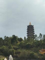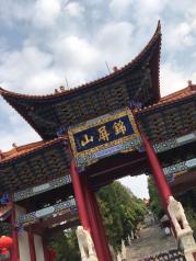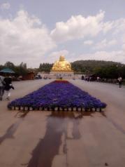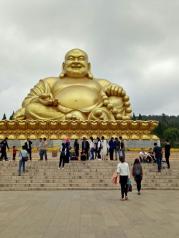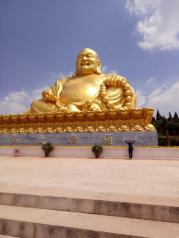 山下的锦屏后海是一湿地公园,风光秀美,电动船游湖可观光,还有水上喷泉造型多变,很有观赏价值。这处景点是来弥勒必到,弥勒寺和弥勒大佛是主要看点。沿着台阶慢慢爬上,细细观看每一处的建筑与风光,虽耗体力可也很值得。建于1999年,高1999米的弥勒大佛,金光闪闪,全身用进口钛金铸制,在蓝天白云的映衬下雄伟无比。