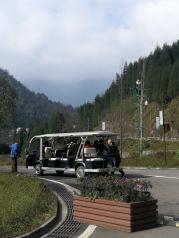 瓦屋山现在作为新开放景区,必须坐观光车才能上去哈,观光车是大巴车上去要开二十多分钟,全是弯很考验技术。观光车是在索道下站停车,从索道下站才开始爬山观景,现在索道这段路的人行栈道还未开所以只能坐索道上山,索道也只能买往返80元。