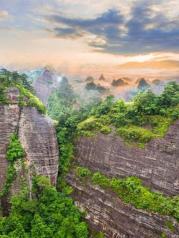 万佛山,丹霞地貌区位于湘、桂、黔三省区交界处的湖南怀化市通道侗族自治县万佛山镇太平岩村,距离县城双江20公里,包括7个景区,面积100.83平方公里。距县城20公里,海拔597.9米,是全国最大的丹霞峰林地貌之一,
