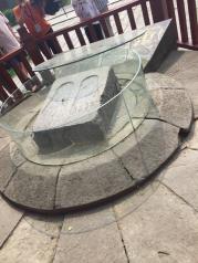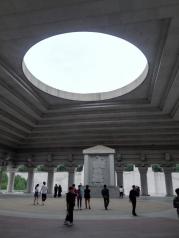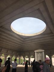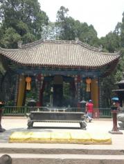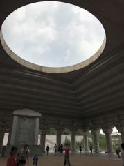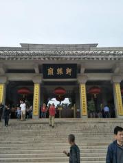 轩辕庙也称黄帝庙,由轩辕庙和祭祀大殿两部分,建筑为全麻石结构,气势雄伟。内有黄帝手植柏,高20余米,苍劲古朴,像个巨伞,另有多株古柏,相互掩映。我们缓缓走到祭祀大殿,感受了天圆地方。