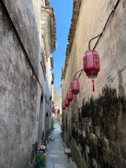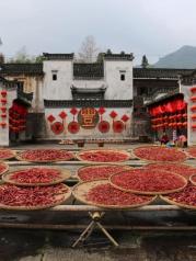 塔川村很大,错落有致,红色在四处飘扬,可以看到村民的晒秋,可以在白墙黑瓦中寻找最后的秋的美色,需要买门票进入,不过好像也可以从其它地方进入!