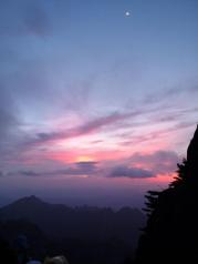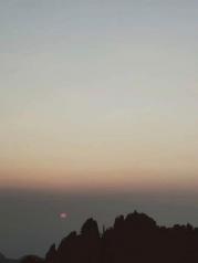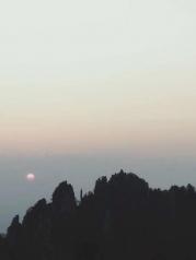 光明顶看日落的人很多,一些绝佳的观景点已经被早些到的游客占领,黄山的日落大约在下午7:00左右。根据前人的经验,我们3:30起床,外面还是黑黢黢的,等待日出的这段时间,我们都有点小兴奋,可以抬头看看美丽的星空