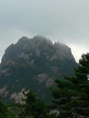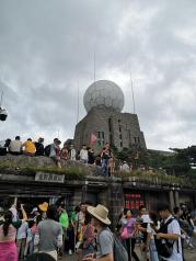 光明顶上面有一个圆顶的天文台。也有一个长长的观景台。可以从这里瞭望群山。据说能看到飞来石,但是我没看到。光明顶上有不少酒店可以住在上面。