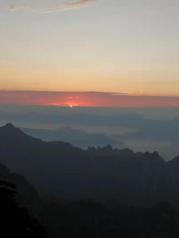 光明顶是黄山上最好的日出观看点 虽然第一天一直下小雨,晚上白云宾馆给的天气预报称第二天可看到日出的几率只有百分之四十多,但也无法阻挡我们看日出的脚步,凌晨四点多就起来上光明顶,等了半个多小时,终于很幸运地看了日出!