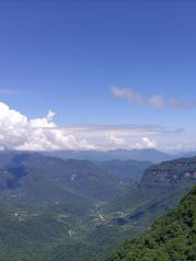 自驾恩施野三峡一日游攻略:上午船游清江大峡谷,下午滑索登恩施之巅;分享一下我们的具体行程:早上自驾到野三峡的清江大峡谷景区,特别要吐槽的是,就算在网上订票还要去售票处排队拿坐船的号码,售票厅很小没有空调,早上人很多,排队一会就热得一身汗,中间还有一些插队吵起来的,好不容易拿到号,还要排队才能进入景区登船,这又等了一个半小时,上船已经十点半了,乘船一小时就到了蝴蝶崖,没有下船直接再坐一小时返程,说实话清江景色尚可,就是景区管理不大行。 中午没来得及吃饭,立即自驾前往黄鹤峰林-恩施之巅景区,中途驾车半小时,山路崎岖。到景区门口快一点半了,然而几乎没什么人,直接很顺利取票就进去了,乘坐套票的滑索到达