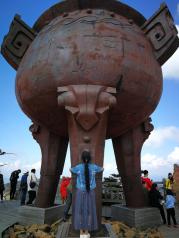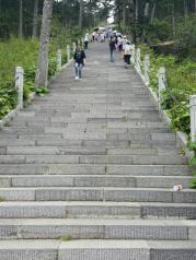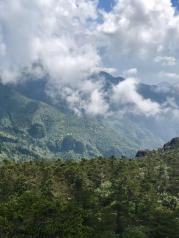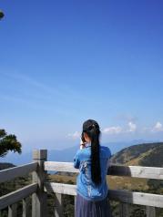 神农顶朦胧的远山,笼罩着一层轻纱,影影绰绰,在飘渺的云烟中忽远忽近,若即若离.就像是几笔淡墨,抹在蓝色的天边.登山2999级台阶到达海拔3106.2米的中华屋脊神农顶,爬得有点缺氧的感觉,最美的风景都在顶上一览无余!再累也值了