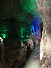 腾空洞位于利川城郊,出城后只6km且公路旁还专门修有一条绿道,租一辆自行车边骑自行车做着有氧运动,边欣赏山间美景,别有一番风味。 网上购票会比现场购票便宜10元,但需要提前一天购买。 进入景区大门须要走一段山路,沿途景色不错,特别快到洞口前,水流如万马奔腾。进洞后,转身看如镜面般的水面洞门的倒影,又是一种心境。建议洞里还是花钱坐景交,往返的,毕竟路还是很长的。下了电动车,首先看激光秀,然后从激光秀舞台的后面往里游览,是环行的,不走回头路。走路观光的这一段大至需要40分钟,激光秀演出是有时间场次的,如果时间允许可以先转后面的洞,再看激光秀。这个激光秀是值得看的,讲的是腾龙洞的传说,展示方式比较特