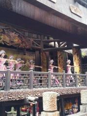 恩施土司城在市区里面,坐车很方便。这个是讲述土司城从元朝开始到清朝雍正结束,兴衰的一个缩影。 里面的建筑很宏达,房屋都是用木头加工做成的,气势宏伟,饱经风霜洗礼! 能保留到现在,已经灰常不错了。本宝宝和同事一起下午过去,下午还有一场50分钟左右演出。 主持人还和到场的驴友一起互动,说一些恩施方言,苗族方言,挺不错的,建议有空过来看看!