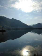 早晨从睡梦中醒来就已经迫不及待的想吸收大九湖的美景,跟着小伙伴早早的出发来到天问湖。 因眼前的美景完全忘却了下车后的阵阵冷意,山脚下一排排白色的房屋,天才微微亮远处湖面上已扬起船帆,勤劳的人儿站在船头忙乎着,慢慢淡迹于山边的朝霞迎来了暖阳,渐渐清晰轮廓的秋山,红黄相间还展现着生机的绿色,静静的站在湖边欣赏,迈不开脚步。