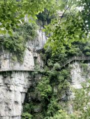 游清江方山风景区,攀爬行走在绝壁栈道间。山泉洞出,怪石林立。“山不在高,有仙则灵,水不在深,有龙者灵”。瀑布飞泉龙性恣肆。藤条盘绕、钩镰错杂,攀援其间,乌鸣林啸、盘绕峰嶂。鸟语蝶旋,泉剑叠出。