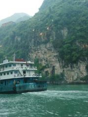 畅游三峡人家,赏雾中三峡大坝。早上8点从葛洲坝下游乘游轮,进入西陵峡。一路风光无限,巴江上峡重复重,阳台碧峭十二峰。大峡套小峡,峡中有峡。两岸礁石林立,怪石横陈,一路可看到,秭归屈原故里,这次错过拜访。过几天去汨罗江在忆屈原。相邻的还有昭君故乡。女神啊。。最震撼的是传说中的悬棺。卧槽。这古代人,卧槽一边水下边峭壁,卧槽我是怎么弄上去的。哎呦卧槽这胆也太大了。中午在三峡人家上岸感受了土家文化。然后看了世界第一内河船闸。双线五级船闸。最后参观了世界第一坝,三峡大坝。今天有雾,远眺大坝若隐若现。很喜欢这种缥缈。
