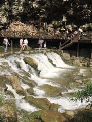三峡大瀑布和金狮洞还有情人泉有套票,如果下午不去朝天吼就可以去这三个位置,宜昌一小时到大瀑布,瀑布一小时到朝天吼,朝天吼两小时回宜昌。景区建议先坐电动车,前两公里没什么看头,下车后边走边逛两公里到瀑布,凉快不累,可以雨衣穿过瀑布,