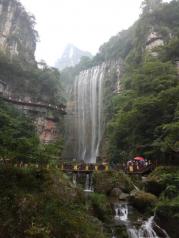 三峡大瀑布交通很方便,从宜昌市区过去,坐汽车约两小时左右。一进入景区就感觉很舒服,从售票处到检票处约二十分钟路程,也可以选择坐电瓶车,十元一人。沿途有好几个小瀑布,还有两个铁索桥,景色不错。最后的大瀑布真的很壮观,从它下面穿过,感觉就像打台风站在海边一样。穿过大瀑布,后面还有个一线天景色也不错。