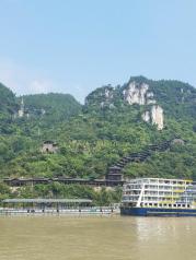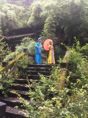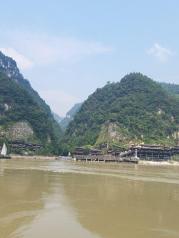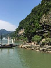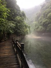 宜昌最后一天去游玩三峡人家。早上从酒店出来的时候天气不错,在夷陵广场坐B10-1旅游专线去三峡人家景区,路上开始下起小雨。在景区下车,买了门票和船票一共180元,从攻略看扶梯30元没有必要。坐船首先到终点站游玩龙进溪,也就是溪边人家,这个景点环境优美,满面翠绿,溪水清澈,沿着溪流缓缓前行,如果天气热,是很好的避暑圣地,到了瀑布就是尽头,回来到哭嫁的表演地,休息一下,赶上12点的表演,满足特色的表演,趣味性十足,值得一看。看完表演,继续往巴王寨方向前进,上山的道路不太好走,雨时大时小,好辛苦,一路游玩了巴王宫,巴王寨,最后到山顶看了灯影石。因为雨天的原因,俯视长江的光线不好影响了拍照效果,但是云