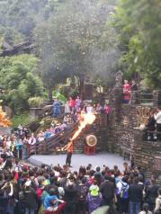 三峡人家讲述土家人的生活,有三种不同生活方式,一.水上人家,二.溪边人家,三.山上人家,用一句俗语:靠山吃山 靠水吃水!也让我这个生活在大城市的人,真实体验了一下少数民族的生活,最让我意外的是,在木制长廊两边,有山里的在两边等游人,投食喂给它们,要说是最通人性的,它们真的能听懂你说的话,我是爱小动物的人(在这里小小啰嗦一下哦)我用喂一只小猴子,可能是因为怕大猴子抢,从我手里拿过吃的,一边往嘴里放一边伸手在要,我就说你先吃完,我再给你,令我惊喜的是~~它好像真的能听懂,不再管我要(一个劲的把吃的往嘴里放),手上没有了就伸手管我再要!让我很意外,动物是我们的朋友,为什么还要有人要伤害它们呢?(有点