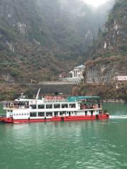 三峡邮轮从宜昌码头离开,不久就是西陵峡了。两岸青山被云雾缭绕,江水悠悠向东流去,邮轮逆流而上,游人站在船头是一眼望不到头的江水及青山。在邮轮上吃的不错,每间房间都带阳台,也挺干净的。总之是吃喝玩乐的好地方。