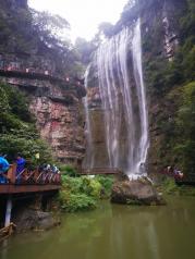 三峡大瀑布景区还是很好耍的,而且不用怕爬山,景区基本都是沿溪而上,在景区里还有最长的吊桥可以耍。一边赏景还可以嬉耍清凉的溪水。游客可以雨衣从瀑布下面穿过去,还是很刺激的。